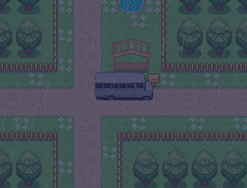 Serene Village por LimeZu | Colectivo por @MarianoPazARG (Twitter) | Interior del colectivo por Kikiyama-